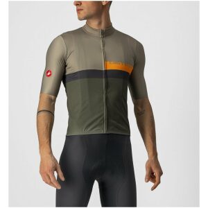 • Castelli A Blocco Jersey-Bark Green/Pop Orange-Dark Gra